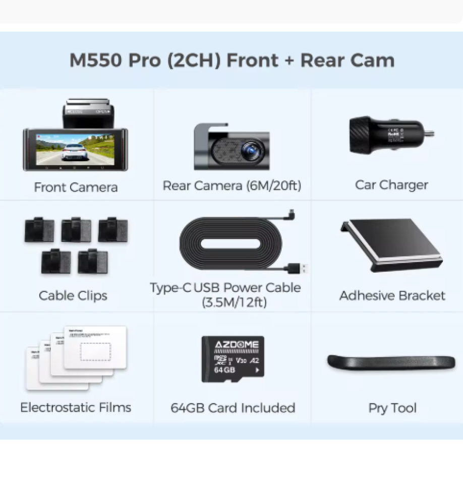 - اسم المنتج: داش كاميرا M550 Pro (2CH)