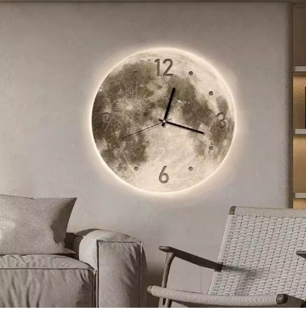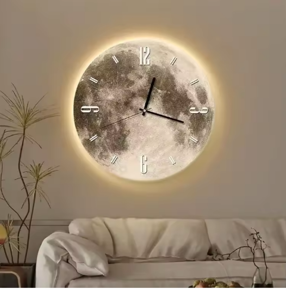 - ساعة القمر مناسبة للمنزل والمكتب، تضفي جوًا مريحًا وأنيقًا في كل مكان توضع فيه.